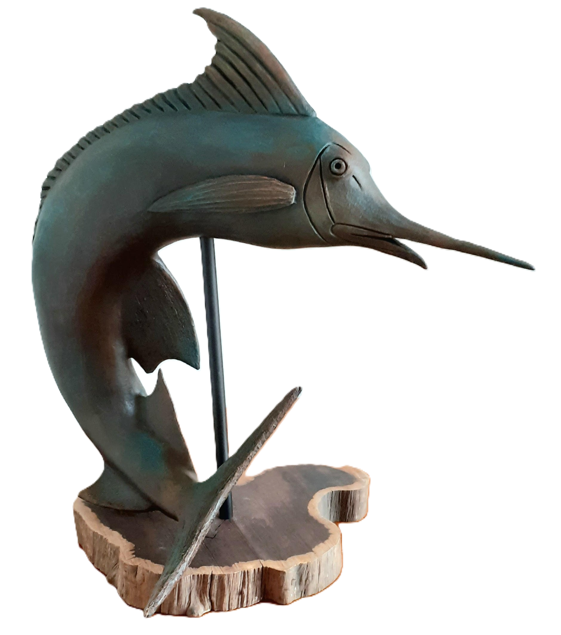 Terre cuite, grès noir peint et patiné monté sur socle ébène et métal